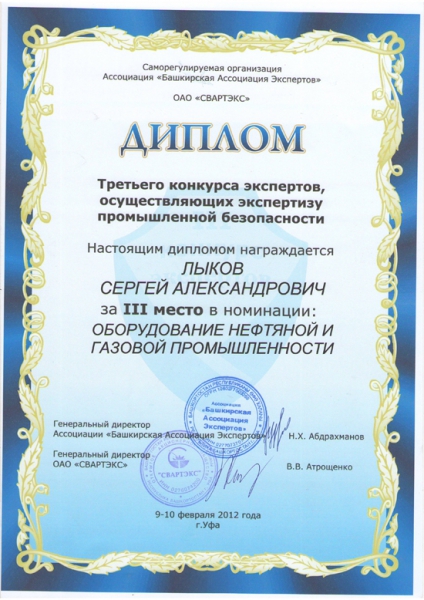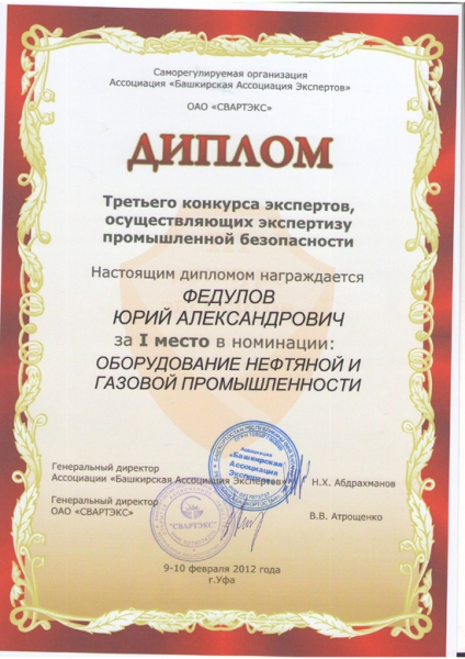 Поздравляем! Федулова Юрия Александровича с I местом, Лыкова Сергея Александровича с III местом "третьего конкурса экспертов, осуществляющих экспертизу промышленной безопасности" << Вернуться |
